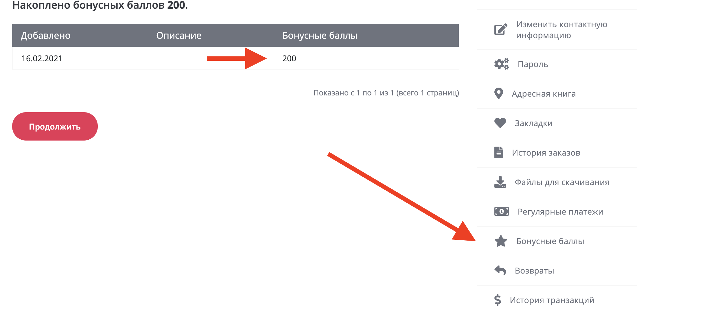 6) При оформлении заказа с авторизацией, Вы увидите дополнительное поле для бонусов